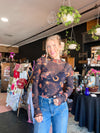 Black sheer long sleeve top with western print. Elevate the look of any tee with this top or wear it under a vest or overalls for a trendy look.