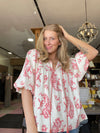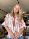 Red mix peasant top with paisley print, tassel and split neckline. This top is great for a winery with friends or out to eat with your love.